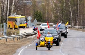 Автопробег стартовал от Мемориального комплекса в Комсомольске-на-Амуре, где нефтепереработчики возложили цветы к Вечному огню. Колонну из более чем 50 автомобилей с юбилейной символикой и знаменами Победы возглавил мотоцикл «Урал» 70-х годов.