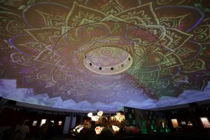 Здание Национальной галереи современного искусства— объект культурного наследия ЮНЕСКО. Специально для этого музея Никас Сафронов создал инсталляцию в виде пятисотметровой индуистской мандалы, которая оживает внутри огромного купола галереи и раскрывает ключевую идею проекта — объединение культуры Востока и Запада. Для усиления восприятия на выставке используется синтез классической живописи и современных технологий: иммерсивную среду создают инсталляции, свет, звук и цифровые решения.