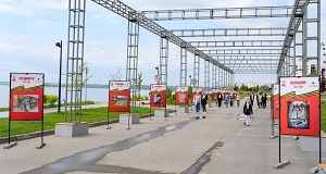 Экспозиция с творческими работами расположена на прогулочной аллее Набережной Космонавтов. Набережная является визитной карточкой Саратова – Города трудовой доблести. Почетное звание присвоено городу за массовый трудовой героизм и мужество саратовцев, проявленные при организации оборонных производств, госпиталей, формировании материально-технической базы армии в годы Великой Отечественной войны.