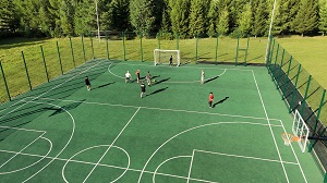 Новый объект площадью 1 200 кв. м – современная арена для занятий баскетболом, мини-футболом и другими командным видами спорта. Благодаря профессиональному оборудованию созданы комфортные условия для тренировок и соревнований. Спортивная площадка оснащена специальным резиновым покрытием, которое обладает амортизирующими свойствами и обеспечивает идеальное сцепление с обувью, безопасность и удобство в разных погодных условиях. Система освещения позволяет проводить занятия в любое время суток, для болельщиков предусмотрена благоустроенная трибуна с навесом.