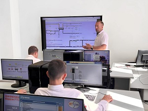 Для обучения по направлению «Ведение технологического процесса» аудитория оснащена программно-аппаратным комплексом компьютерных тренажеров. Данный комплекс имитирует работу реальных технологических установок в условиях, максимально приближенных к производственным. Работа на тренажере позволяет студентам отрабатывать навыки управления установкой первичной переработки нефти – от запуска до плановой остановки.