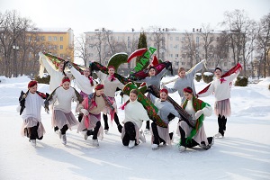 В ледовом представлении на центральной площади города юные спортсмены по фигурному и синхронному катанию исполнили хореографические номера под фольклорные композиции народов России. Призеры спортивных состязаний региона продемонстрировали отточенную технику и артистизм.