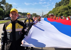 В Иркутской области коллективы Ангарской нефтехимической компании и Ангарского завода полимеров присоединились к городской патриотической акции. Работники совместно со школьниками «Движения первых» и юнармейцами пронесли по центральной улице полотно российского триколора.